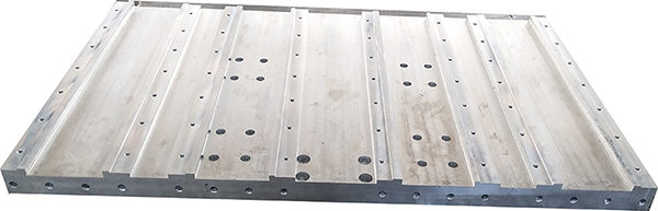 ◆六根立腿和拉大框方管為壁厚10mm,截面200*300厚壁大方管焊接,拉撐為100*200方管,臺面為60*80方管橫豎交叉雙層鋪滿臺面,立腿與大框使用斜撐加固,結(jié)構(gòu)穩(wěn)定,變形小。導(dǎo)軌面齒條面鋼帶厚度為25mm,床身重達(dá)1300KG,真正的重型加工中心床身。