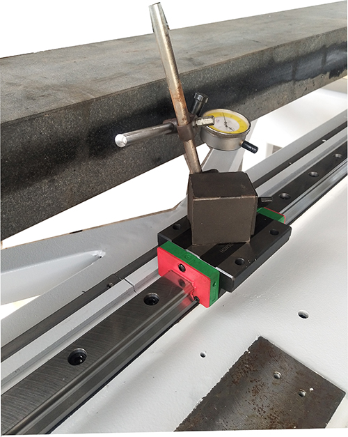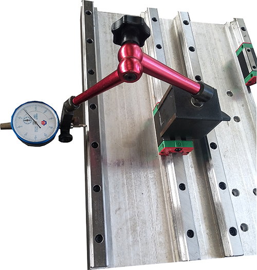 每根導(dǎo)軌安裝時(shí)均打表檢測(cè)導(dǎo)軌的平行度。